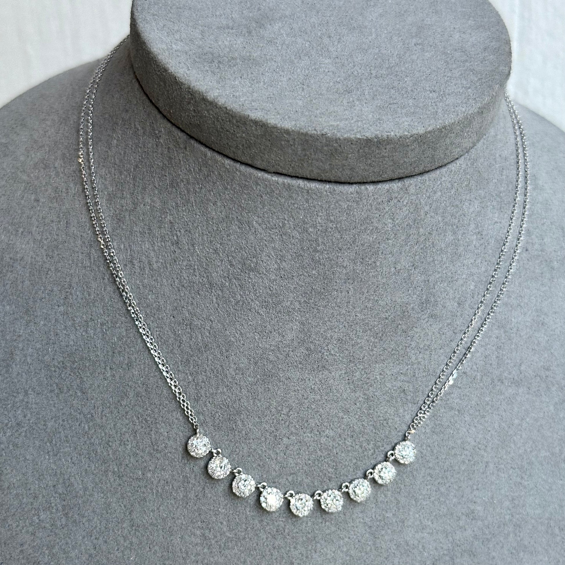 Elevate your elegance with our 14K White Gold Circle Diamond Necklace. This stunning piece showcases a series of nine beautifully crafted circles, each adorned with sparkling diamonds totaling 0.83ctw. The interplay of light and design creates a captivating look that is perfect for both special occasions and everyday wear.