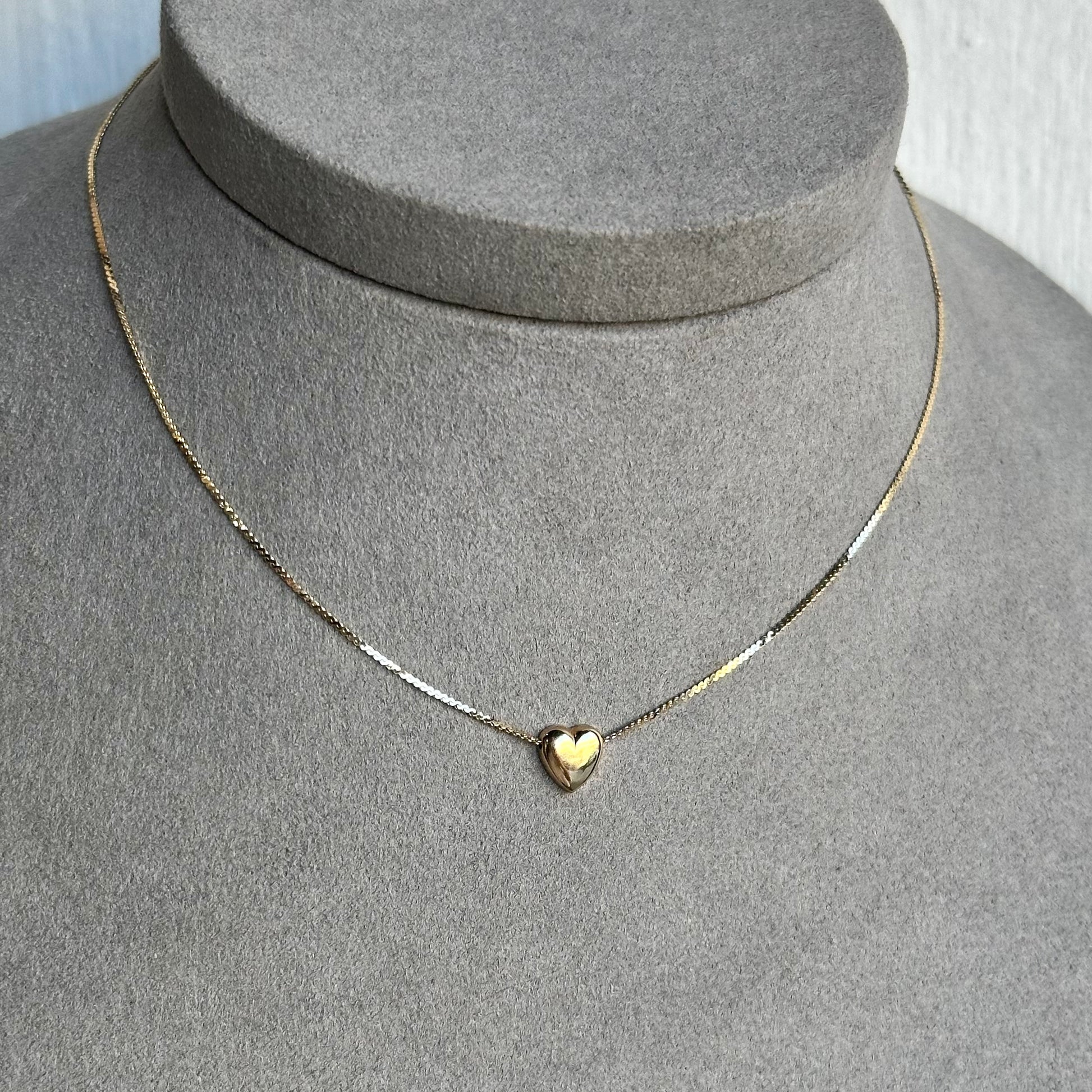 14k Yellow Gold Vintage Heart Pendant Necklace – 16" Chain – Sweet & Delicate Design for Everyday Wear