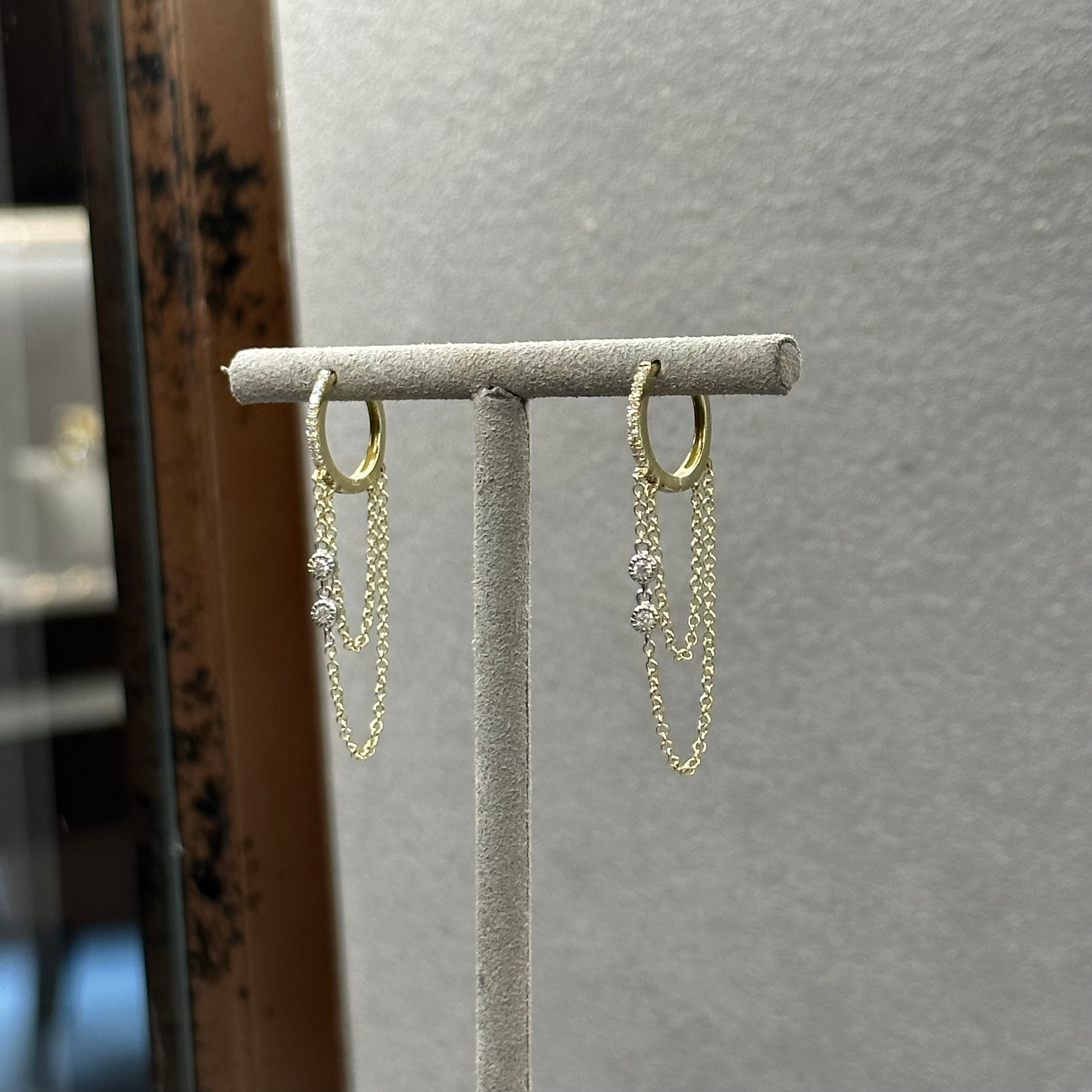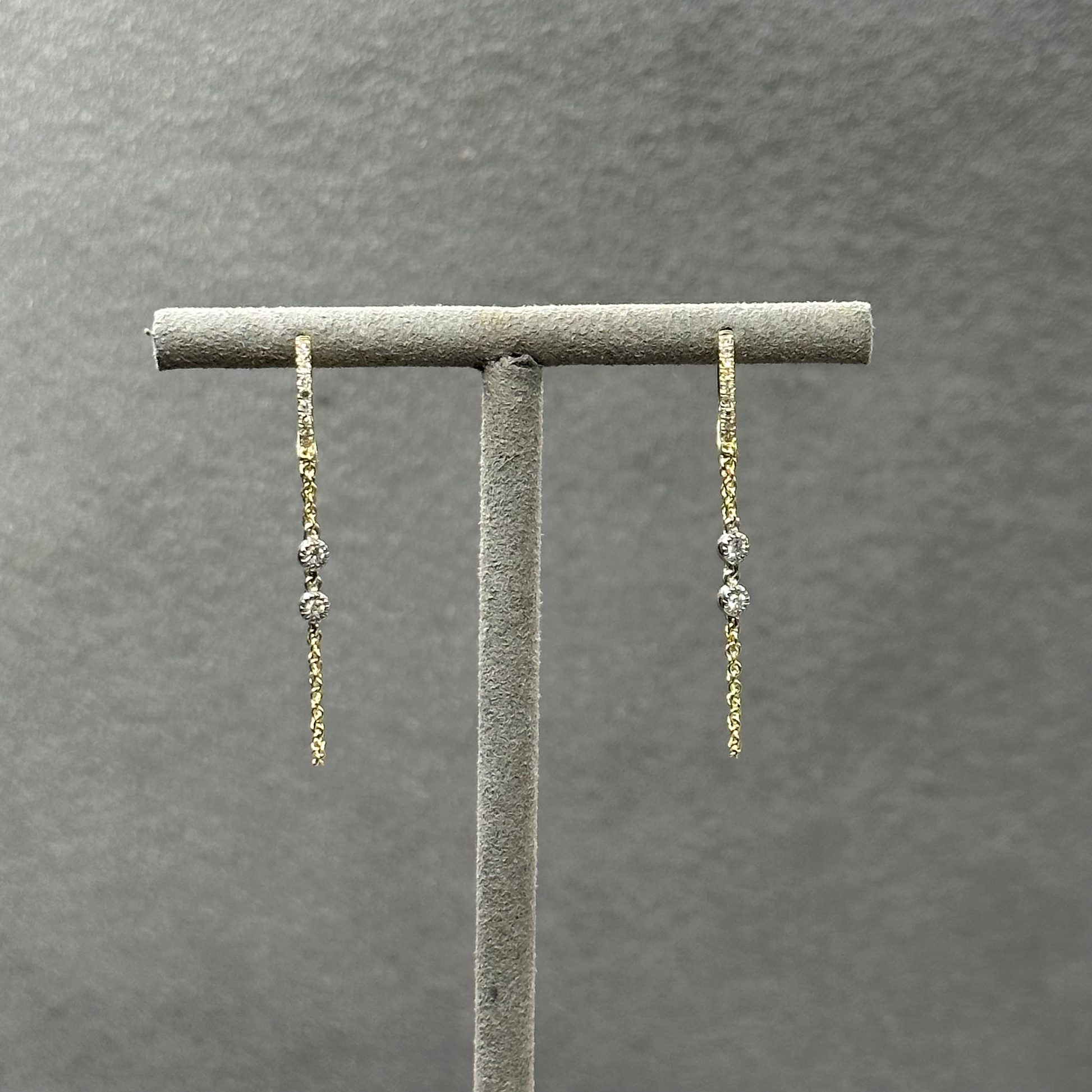 Two Tone Bezel Diamond Chain Pave Dangle Drop Earrings