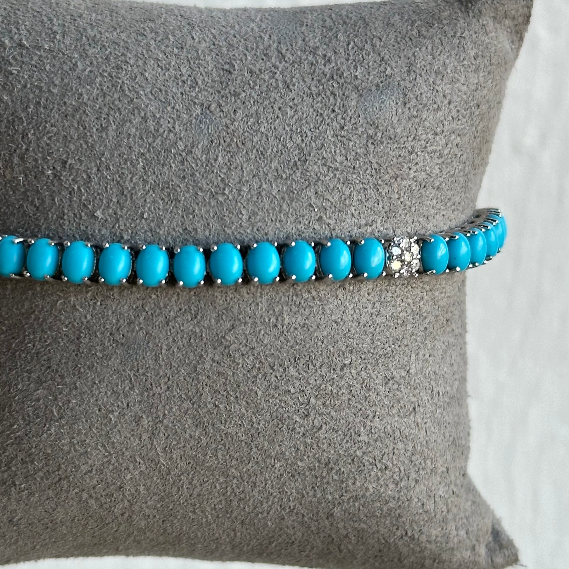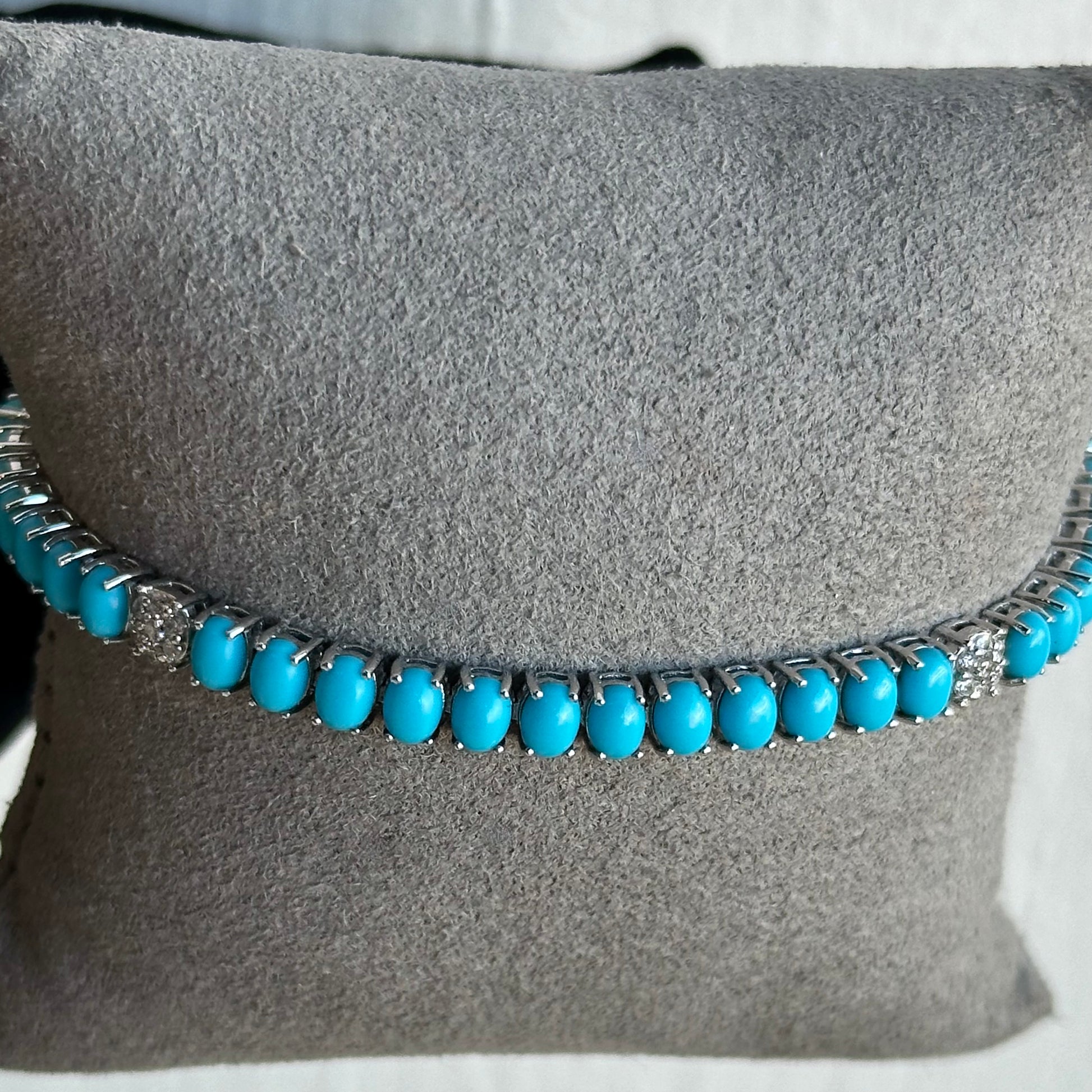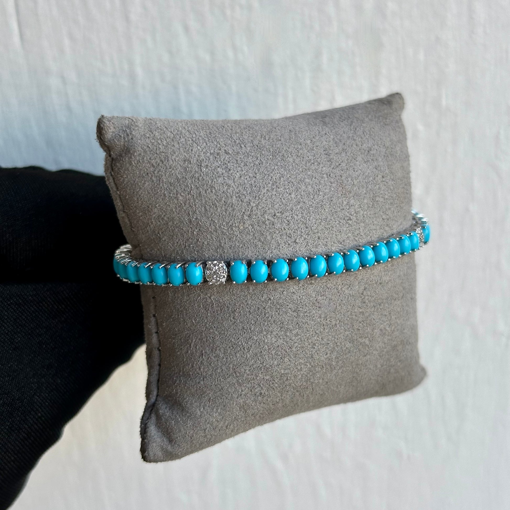 Add a pop of color and luxurious sparkle with this 14KT white gold turquoise bracelet—a beautifully crafted piece that effortlessly combines the natural beauty of turquoise with the brilliance of diamonds.
