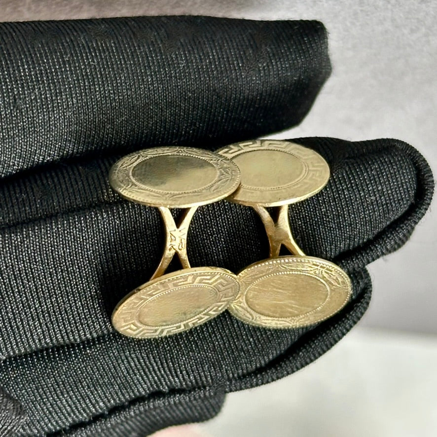 Crafted in solid 14KT yellow gold, their clean lines and minimalist round shape are elevated by the aged finish—adding depth, warmth, and a genuine vintage soul. They’re sleek, masculine, and unforgettable—the perfect accessory for weddings, work events, or special dinners.