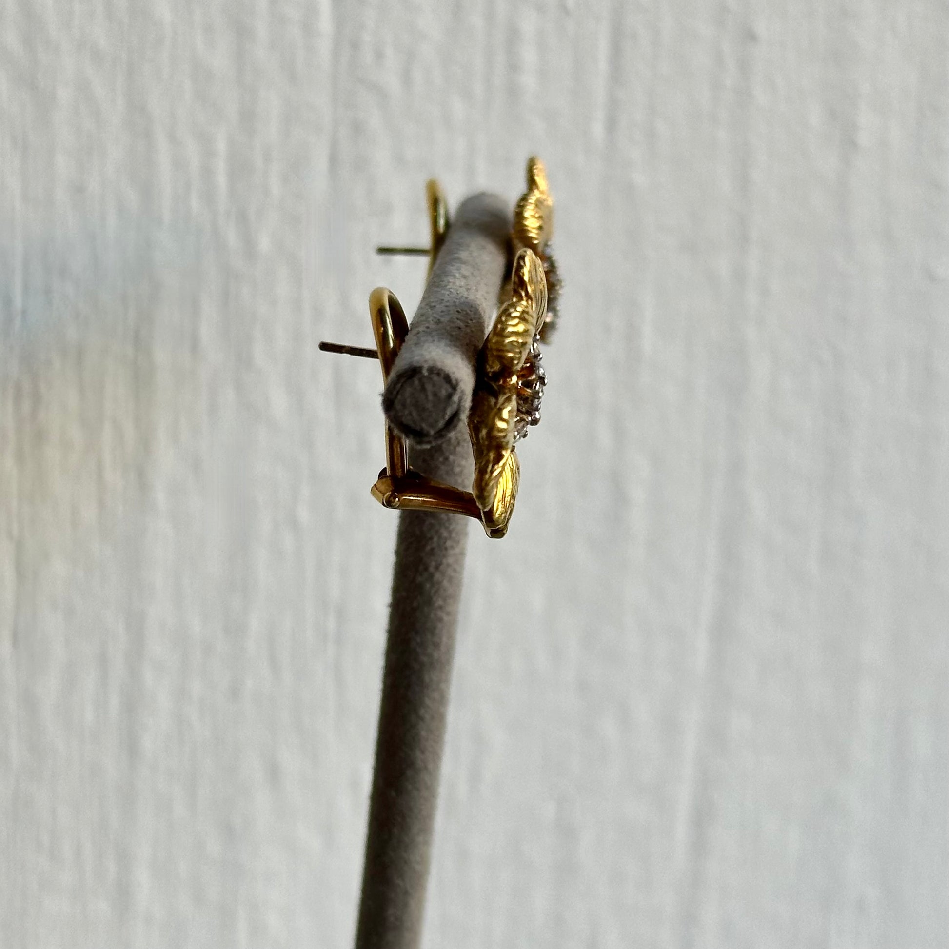 At the heart of each flower is a sparkling diamond, adding just the right amount of brilliance and luxury to this already stunning design. The lever back closure ensures a secure fit, making these earrings perfect for everyday wear or as a special touch for formal occasions. The combination of vintage style, textured gold, and diamonds makes these flower studs an exceptional choice for anyone who appreciates fine, unique jewelry.