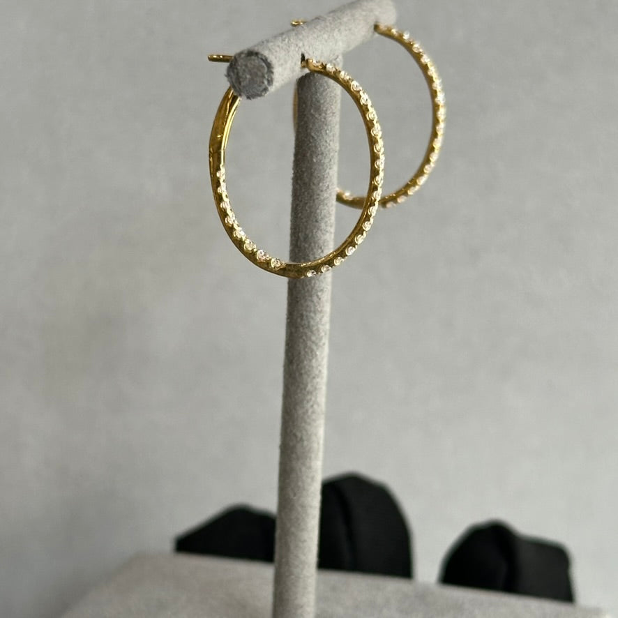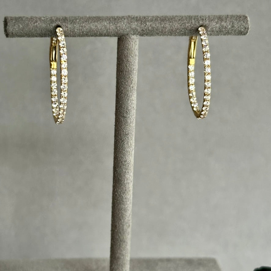 14KY Oval Shape Diamond Hoop Earrings - 0.89 TCW Inside-Out with Diamond Clasp Mechanism