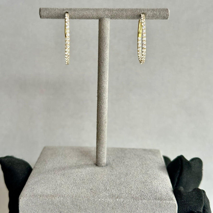 Elevate your jewelry collection with these stunning 14KY Oval Shape Diamond Hoop Earrings, designed to add a touch of elegance and sparkle to any outfit. Crafted from high-quality 14K yellow gold, these hoops feature a unique inside-out design, showcasing brilliant diamonds on both the inner and outer surfaces for a mesmerizing sparkle from every angle.