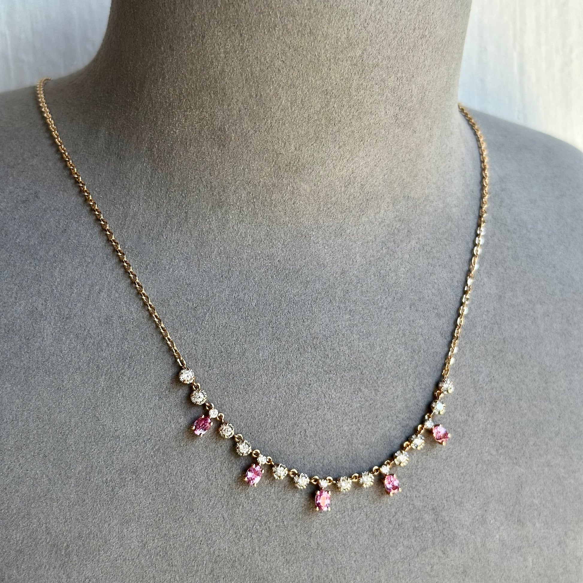 18kt Rose Gold Oval Cut Pink Sapphire Necklace with Round Cut Diamonds
