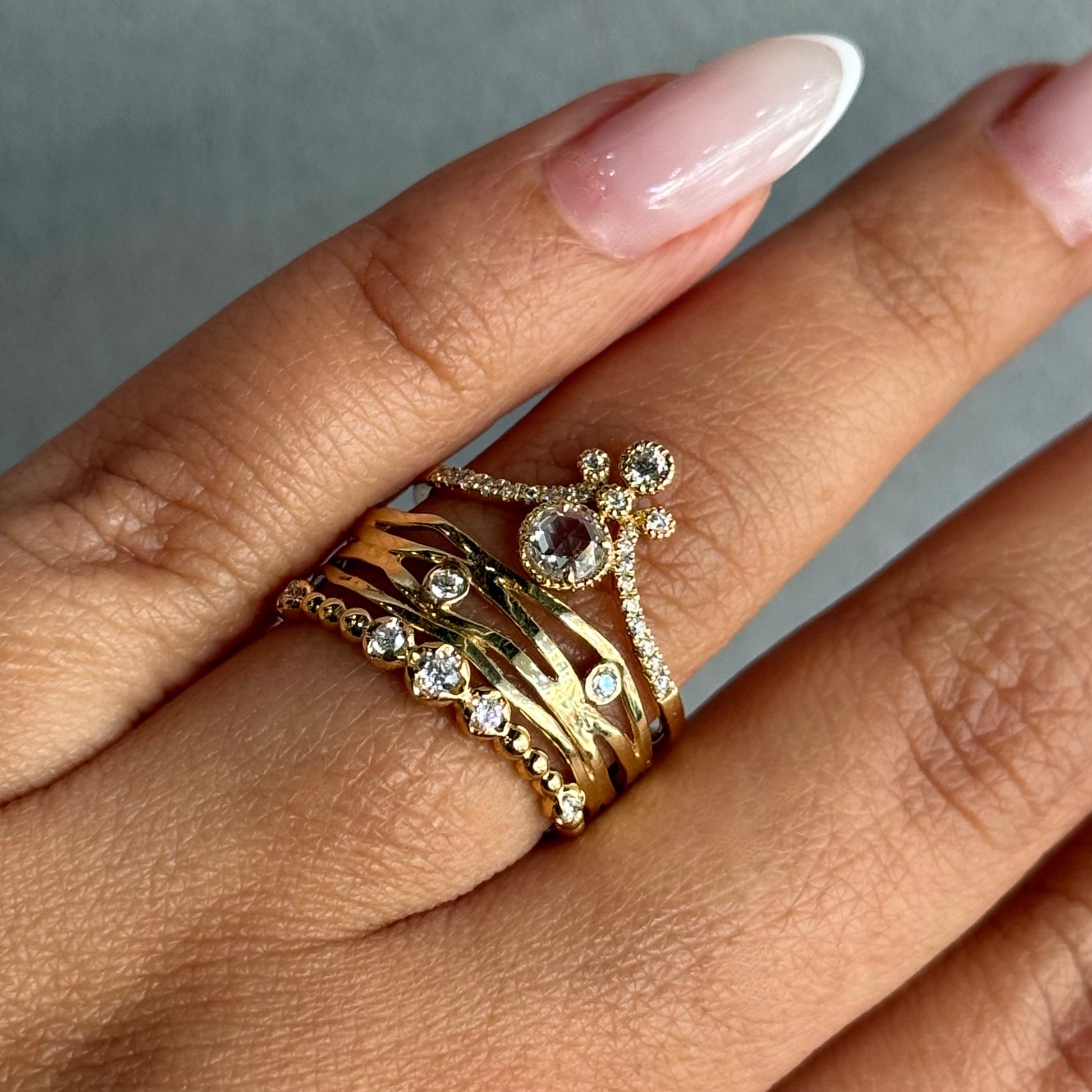 18kt Yellow Gold Rose Cut Diamond Ring with Milgrain Detailing and Brilliant Accents