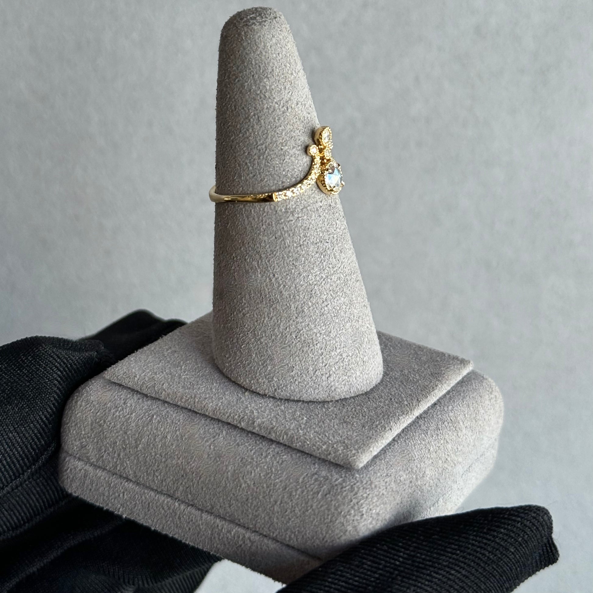 Crafted in warm 18kt yellow gold, this piece blends timeless craftsmanship with a modern yet unique silhouette. Perfect as an engagement ring, anniversary gift, or statement piece, it radiates sophistication with its romantic rose cut diamondand vintage-inspired milgrain details.