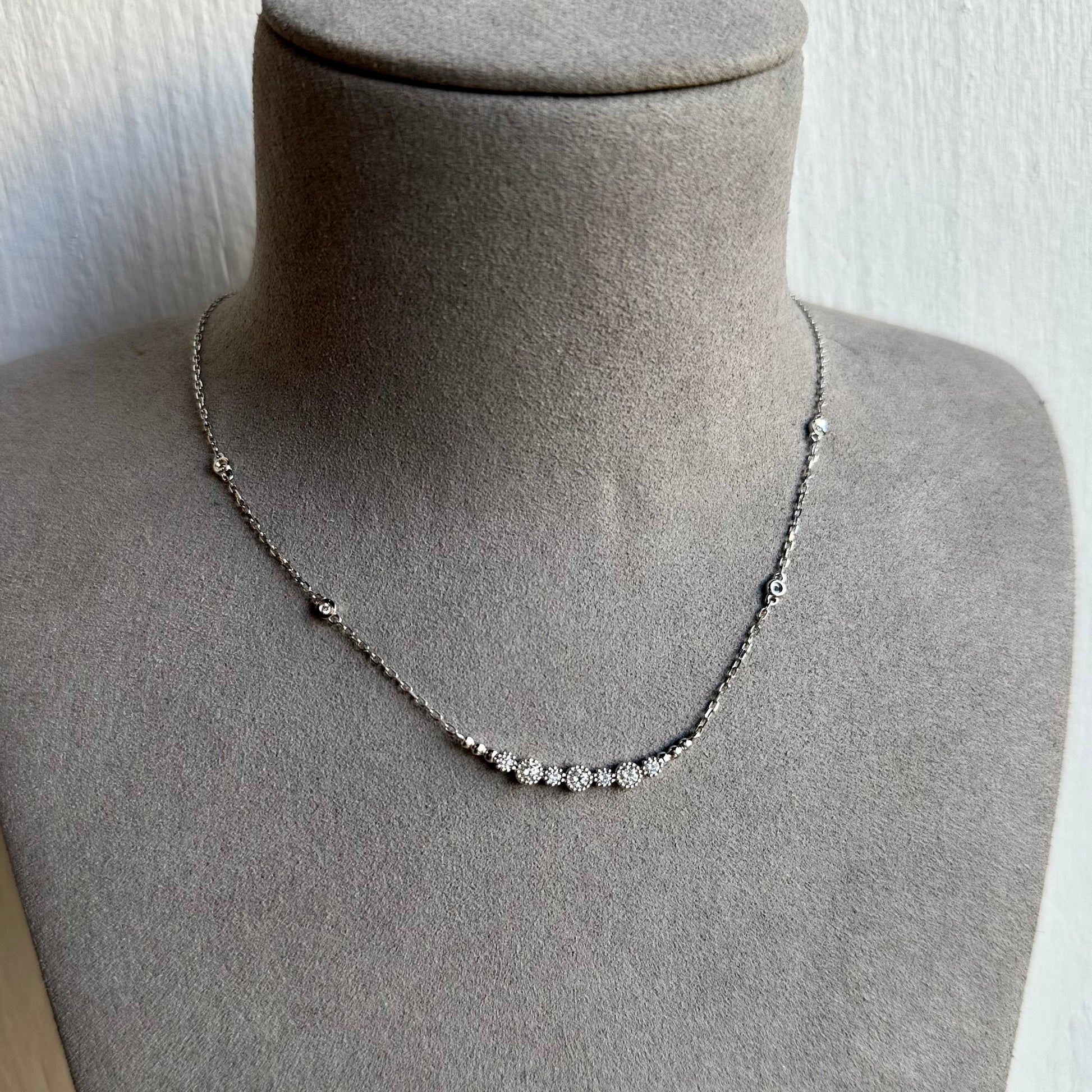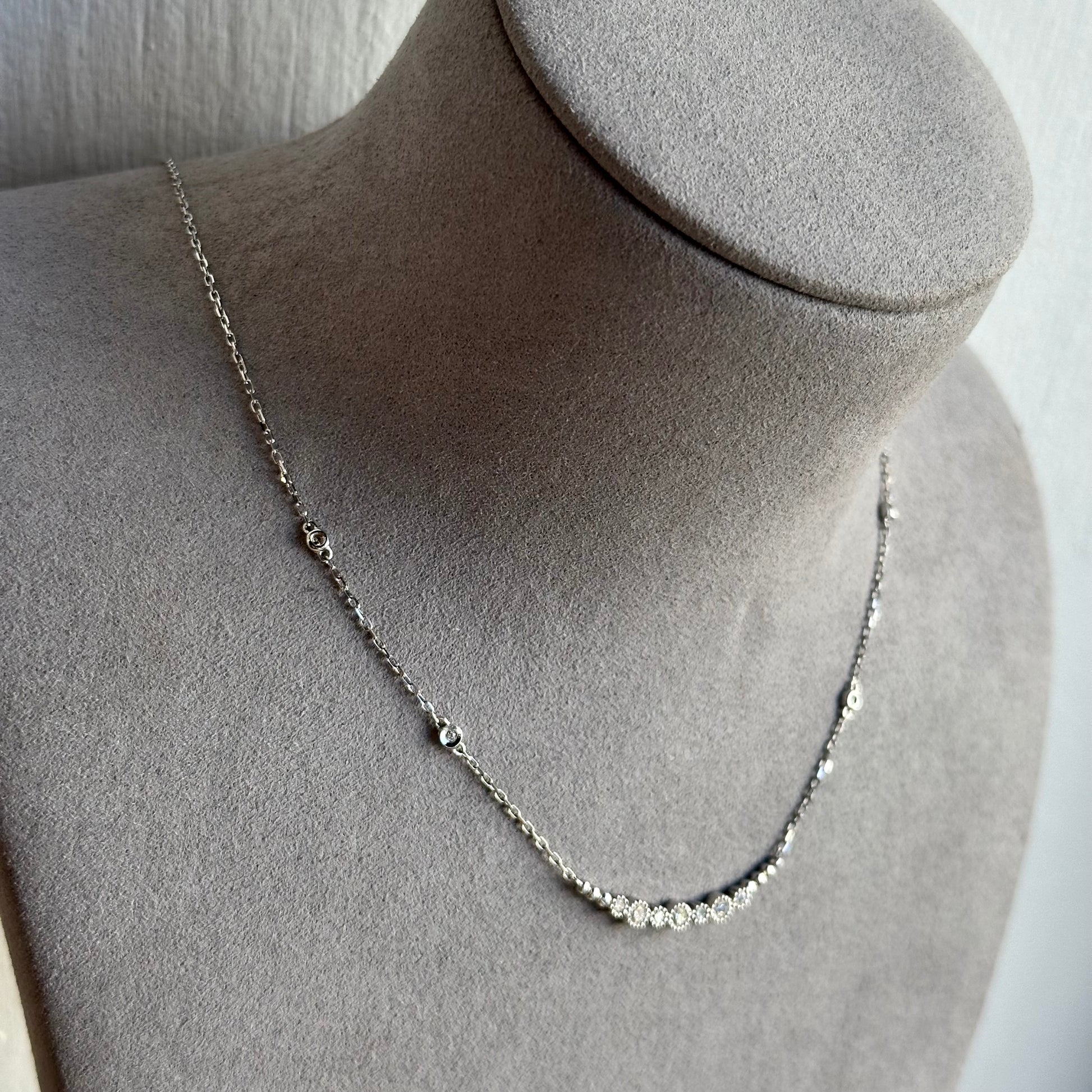 Diamond Beaded Milgrain Etching Bar Necklace