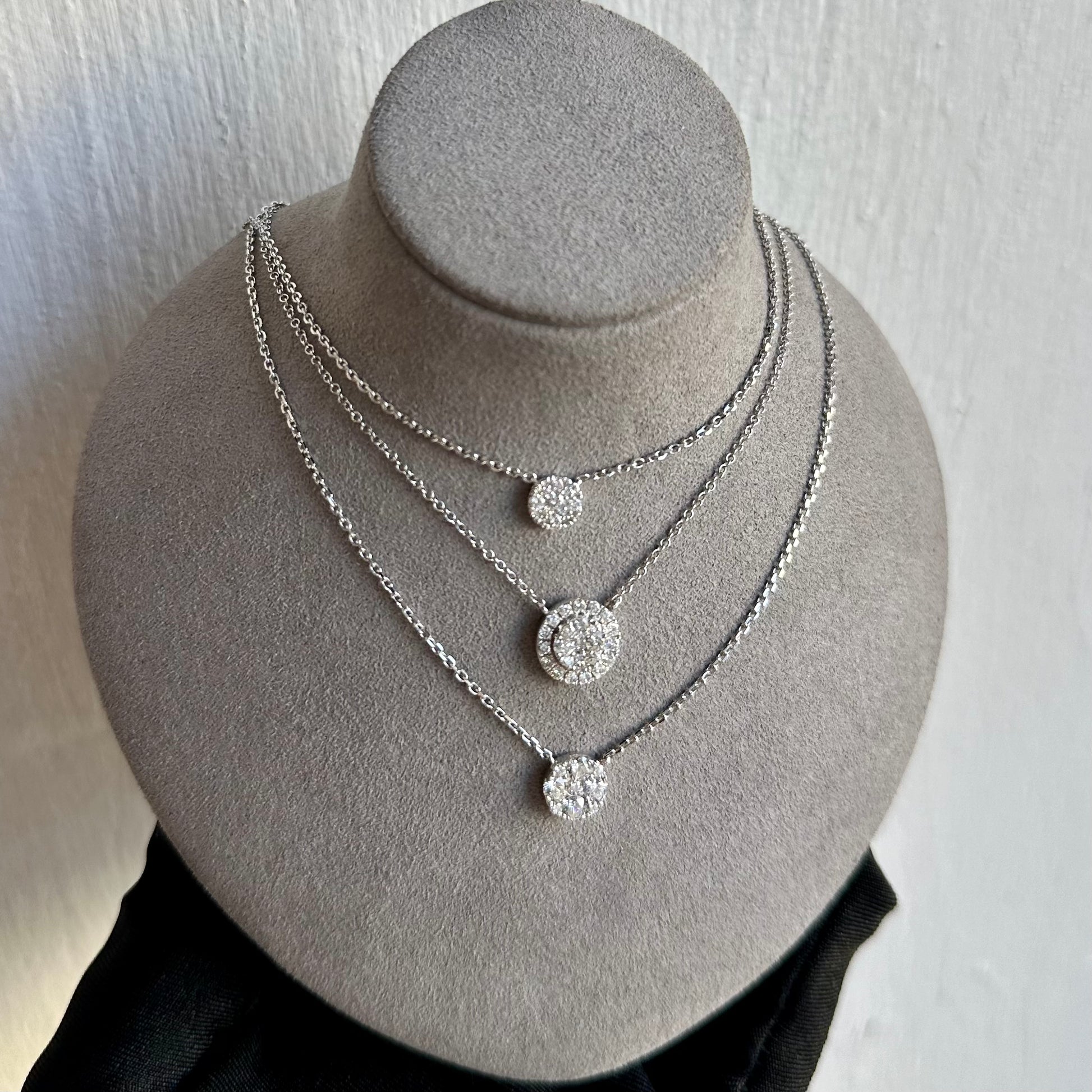 Transform your wardrobe with this stunning .55ctw round brilliant cut diamond pendant. Crafted in 14kt white gold, this timeless necklace is the perfect accessory for any occasion. Wear it alone to make a statement or layer it with your other favorite necklaces for a more versatile look. Add some sparkle to your life with this beautiful piece.