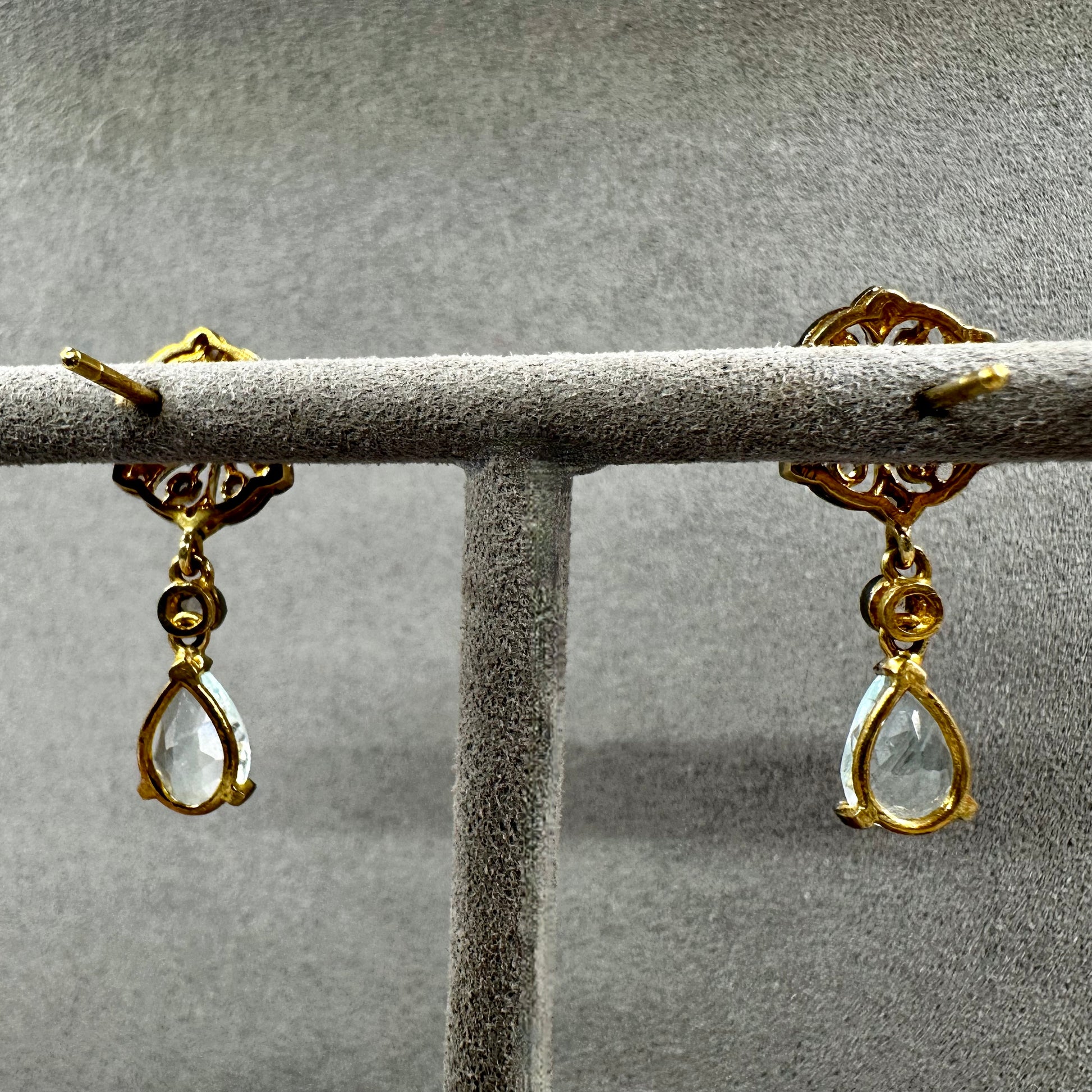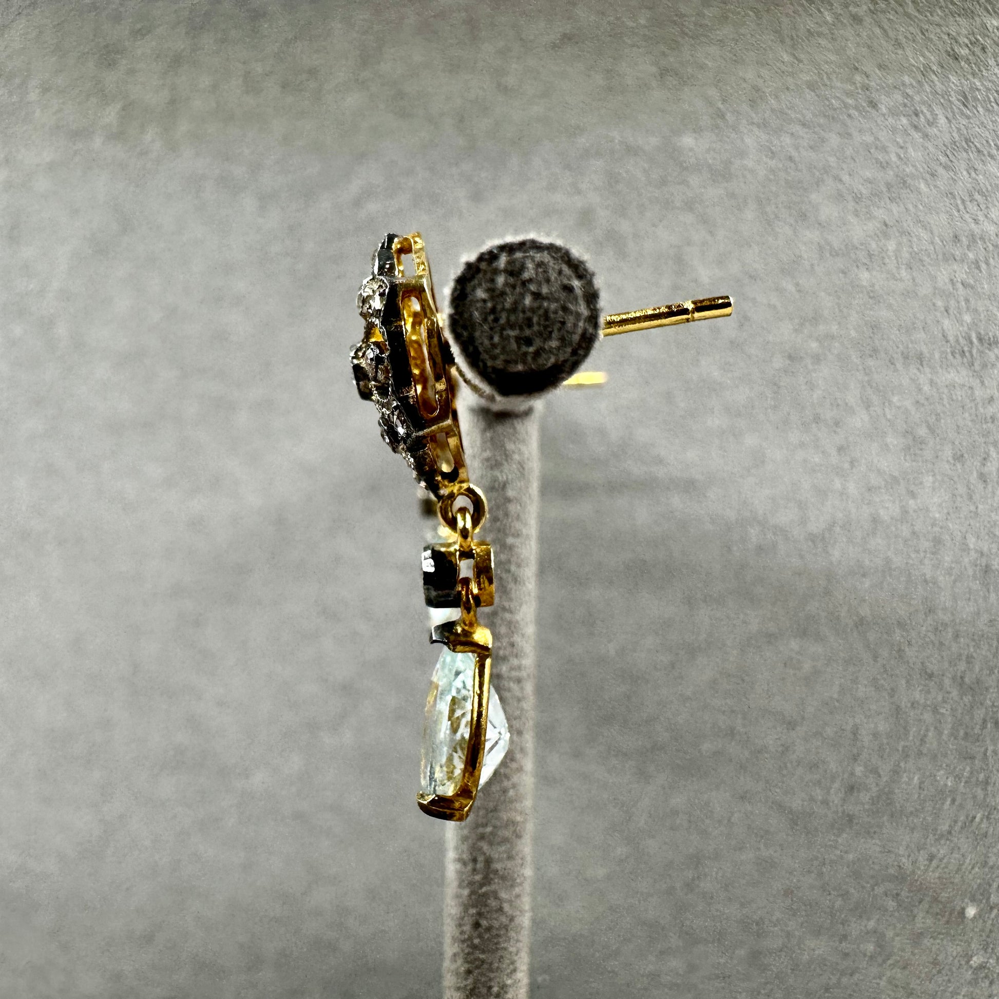 Estate 1910's 14kt Rose Cut Diamond & Pear Cut Aquamarine Drop Earrings