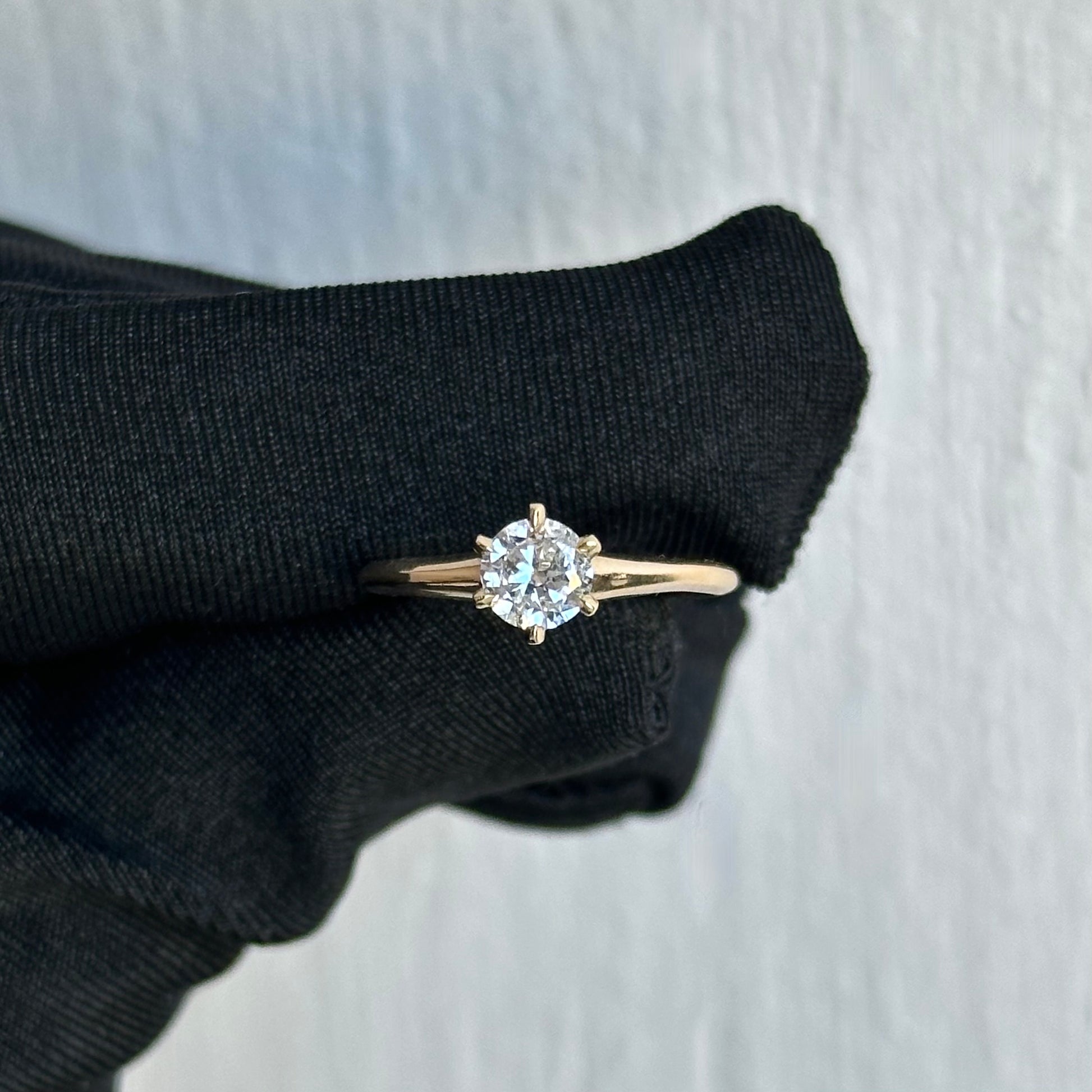 Vintage Charm: An authentic antique solitaire ring that exudes timeless beauty, ideal for those seeking a ring with character and historical value. This piece captures the craftsmanship and elegance of a bygone era.