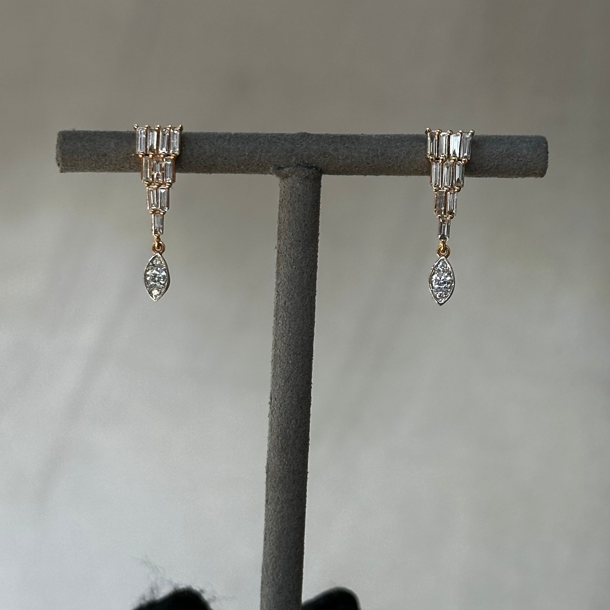 Rose Gold Baguette Diamond Triangle Pyramid Stud Drop Earrings
