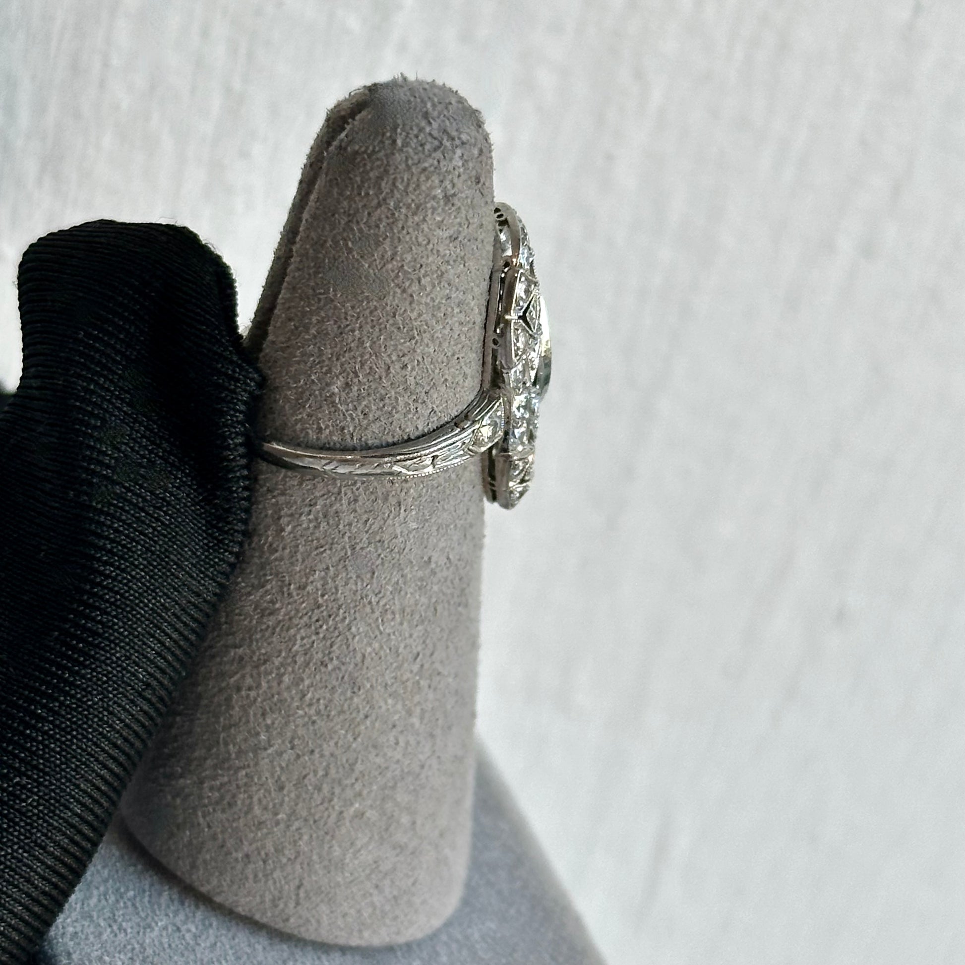 Stunning Art Deco Platinum Ring with Marquis Center Diamond – 0.76ct J SI1, Surrounded by Old Mine Cut Side Diamonds