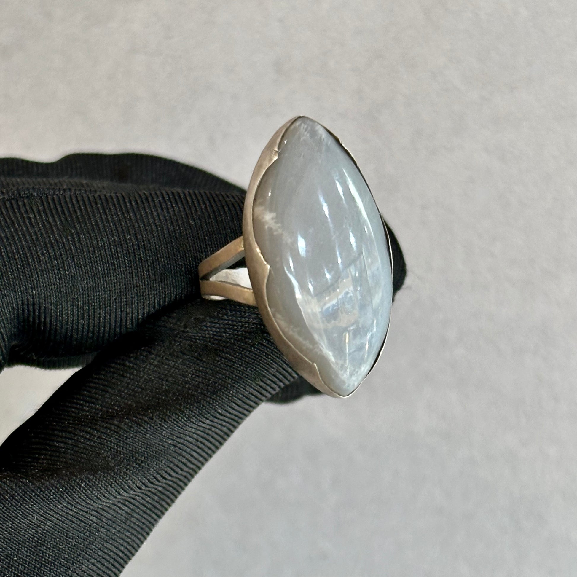 Stunning Marquis Cut Grey Moonstone Cocktail Ring in Silver – Wave Bezel Set with Matte Finish