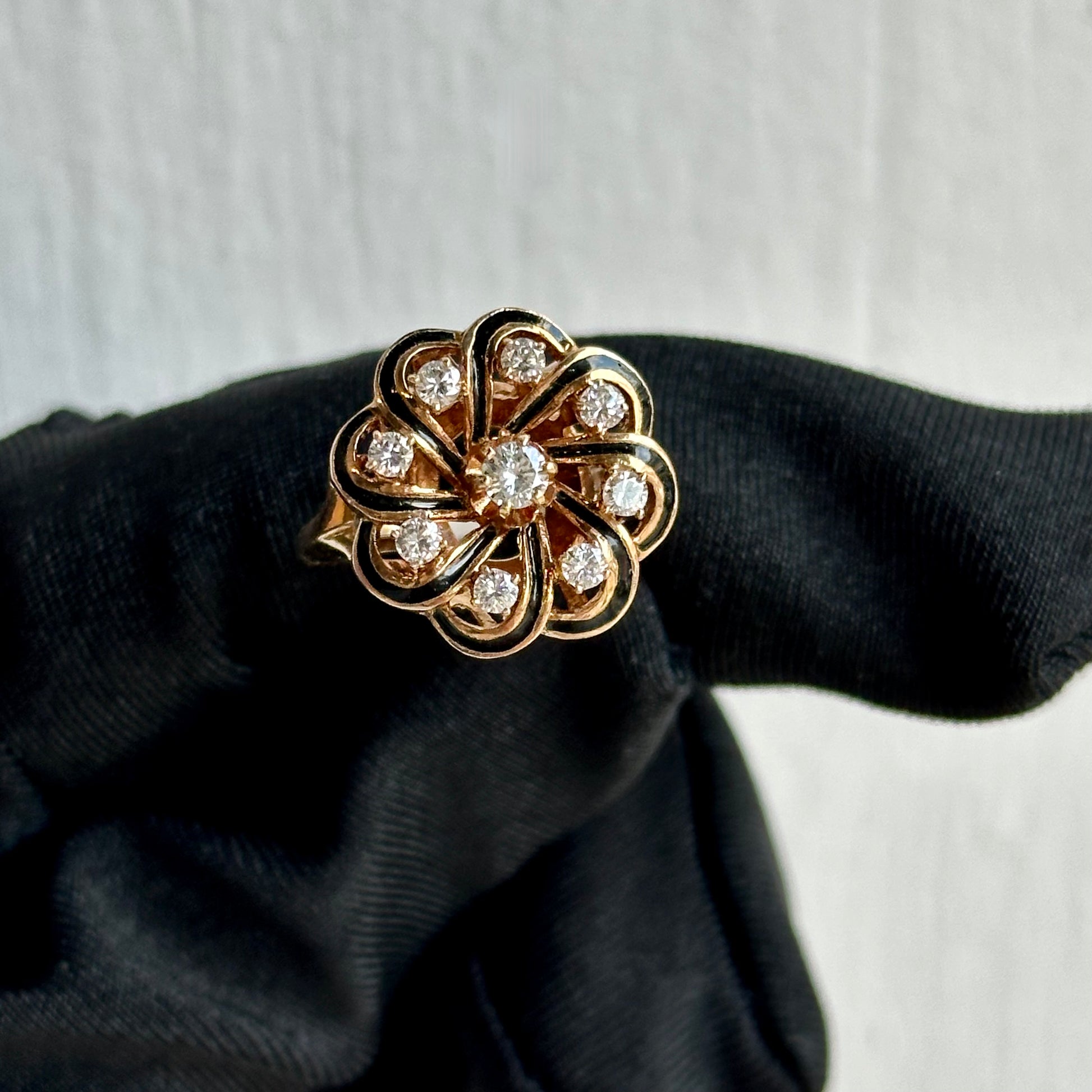 Perfect for collectors or anyone looking for a unique, vintage piece, this Minger Mate black enamel and diamond ringcombines functional design with timeless beauty. Whether for everyday wear or special occasions, this ring offers both comfort and elegance.