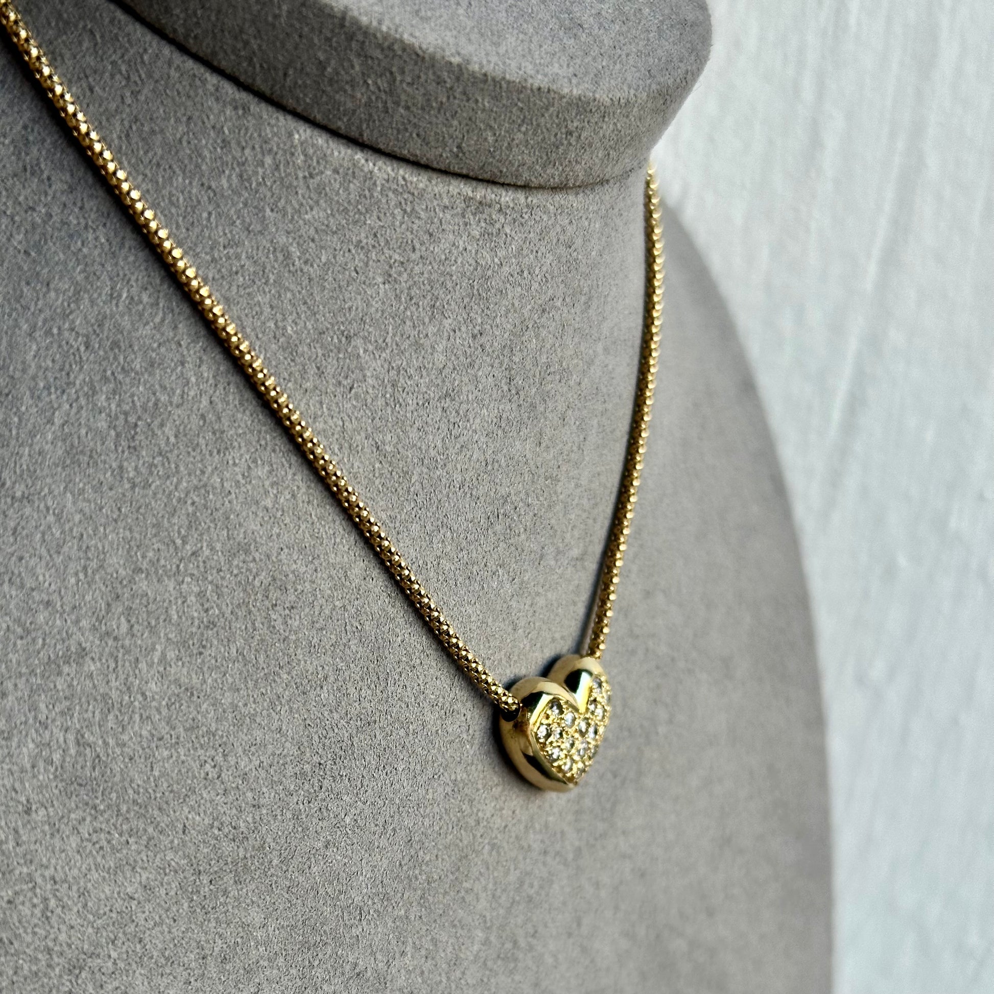 Vintage Heart Diamond Necklace | 16" Rounded Snake Chain | .50ctw Diamonds in 14k Yellow Gold