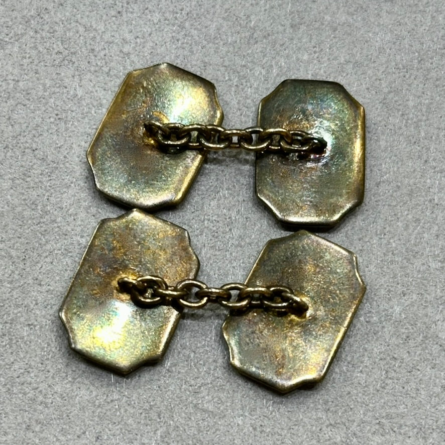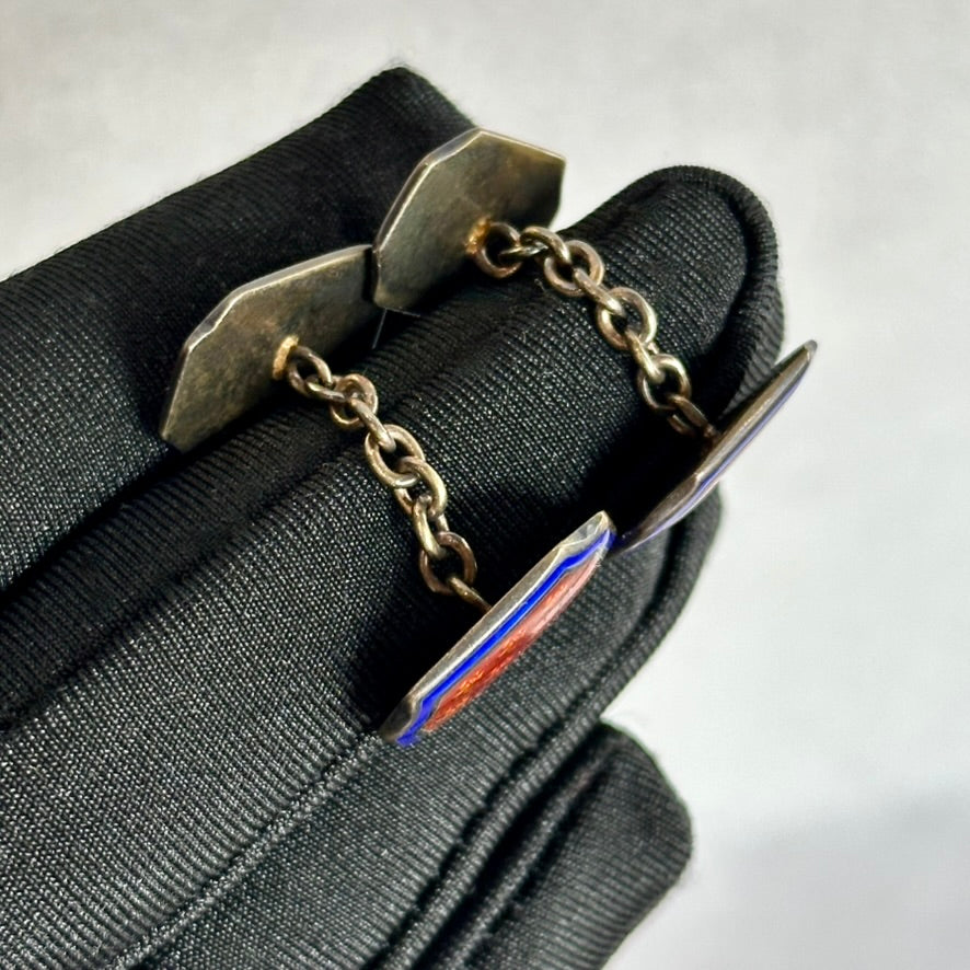 Crafted from antique brass and preserved in their original vintage condition, these cufflinks radiate old-world elegance with a dash of bold color. The vivid enamel work contrasts beautifully against the warm brass tones, making them a true standout accessory.