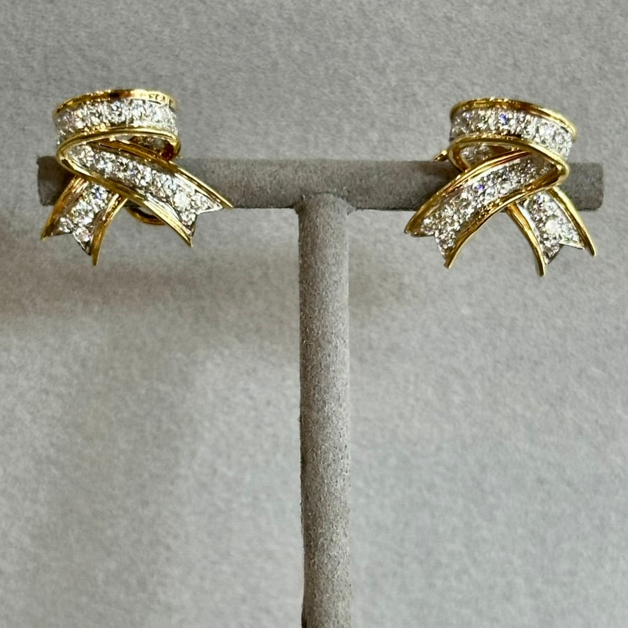 Vintage Tiffany & Co. Ribbon Earrings | Platinum & 18K Yellow Gold | 5.76ctw Diamonds | Circa 1989 | Post & Clip for Pierced Ears