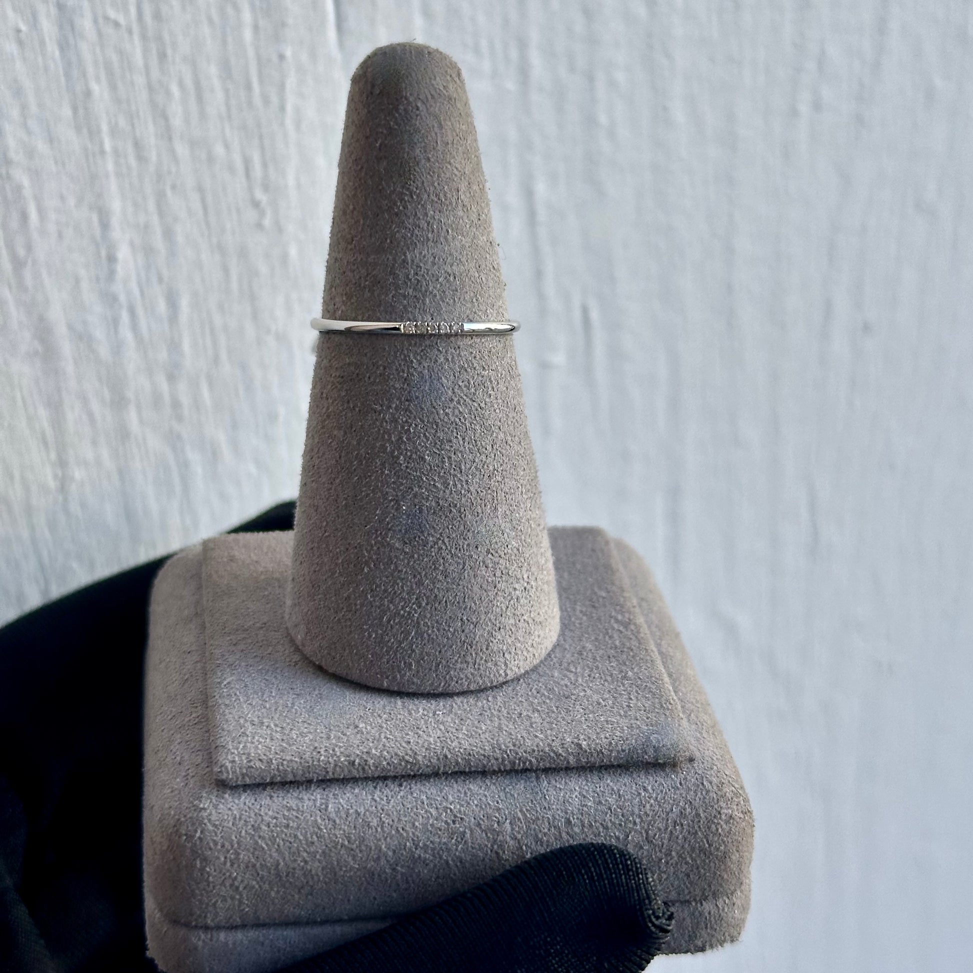 This elegant ring is perfect for daily wear and complements an engagement ring beautifully! Crafted with delicate 14kt white gold and adorned with micro pave set diamonds, it is a subtle yet stunning statement piece.