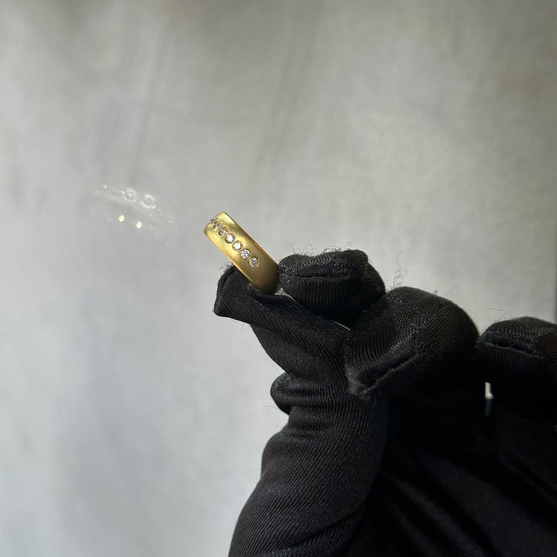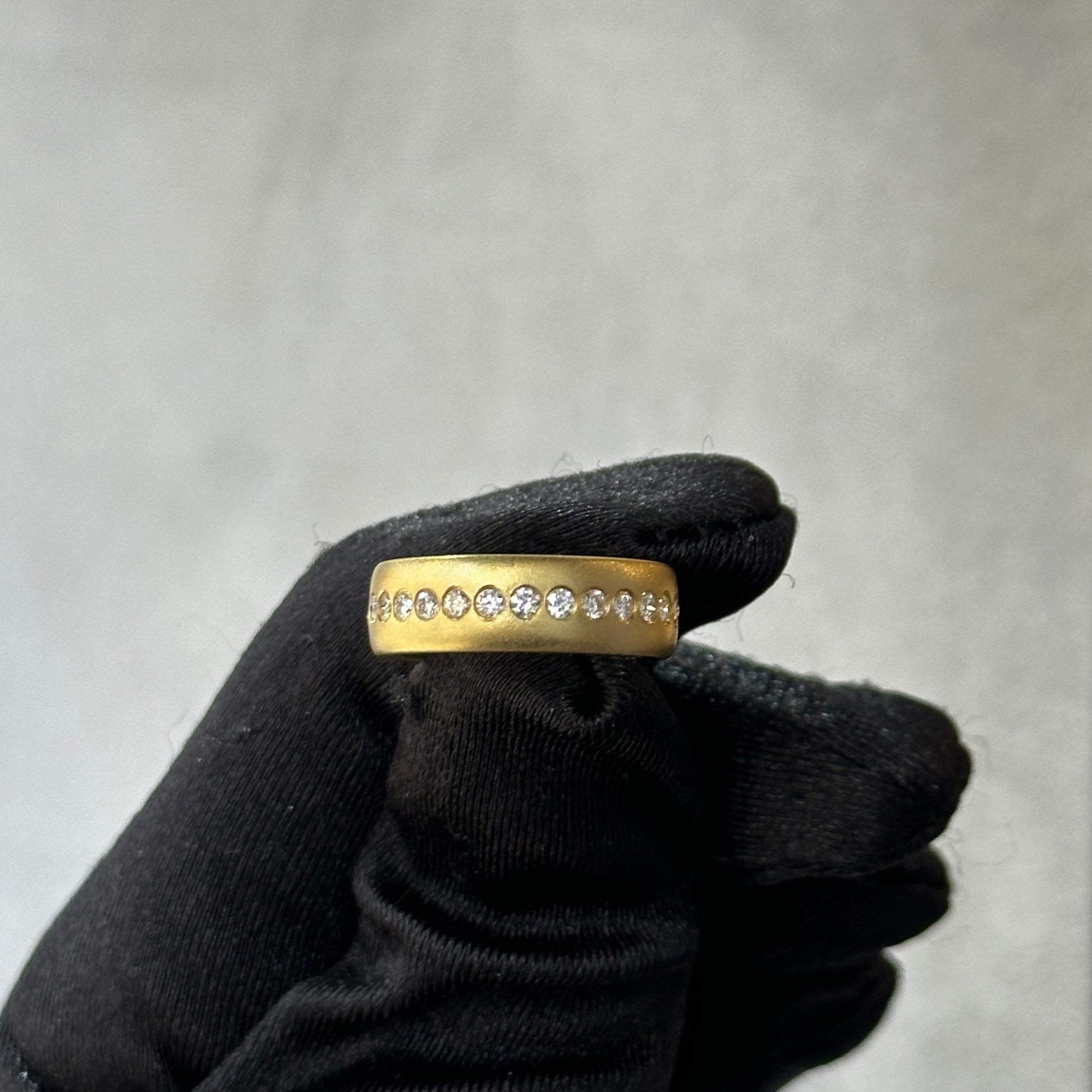 Yellow Gold Satin Finish Bezel Set Diamond Band